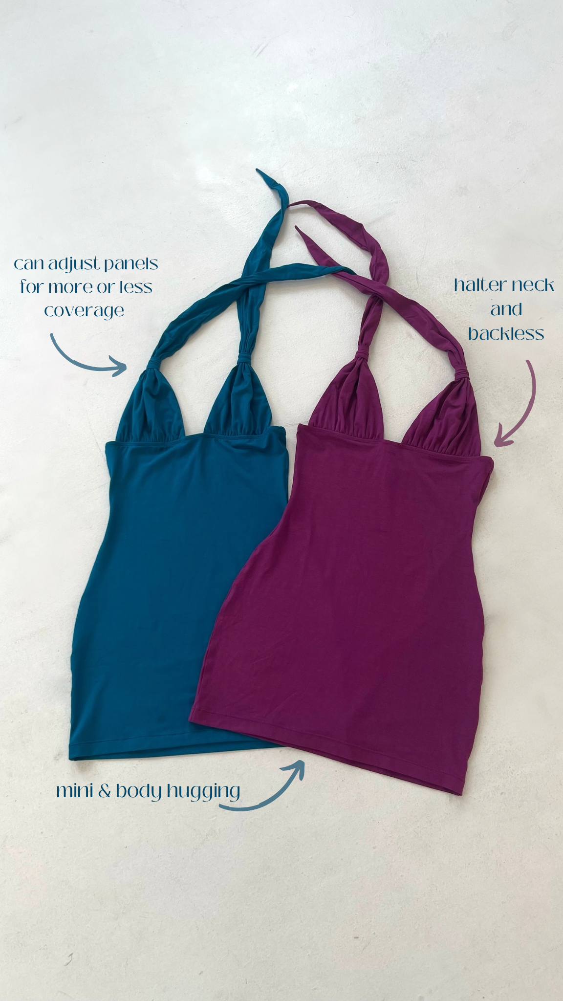 Introducing the Grace Bay Mini Dress, the mini dress of the summer. Backless with adjustable panels to make chest more or less full coverage. Halter-neck and double lined on the bust. Dress this mini dress up or down with sandals or heels. Fits true to size, but we recommend sizing down for an ultra mini look.